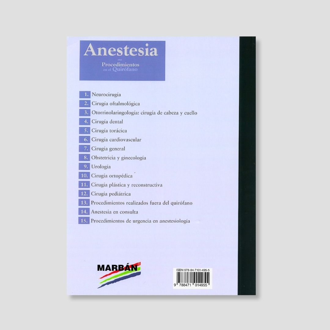 “Anestesia con Procedimientos en el Quirófano” (3ª edición) es una guía práctica y de consulta rápida que proporciona información clínicamente relevante sobre una amplia variedad de procedimientos quirúrgicos habituales y menos comunes, organizada por especialidades (15 secciones: neurocirugía, oftalmología, ORL/cabeza y cuello, dental, torácica, cardiovascular, general, obstetricia/ginecología, urología, ortopédica, plástica, pediátrica, fuera del quirófano, en consulta y urgencias en anestesiología). Ampliada con 8 nuevos capítulos y docenas de procedimientos actualizados, enfatiza las implicaciones anestésicas sin pretender ser un tratado exhaustivo de anestesia o cirugía, destacando la importancia de la experiencia clínica. Referencia esencial para anestesiólogos.