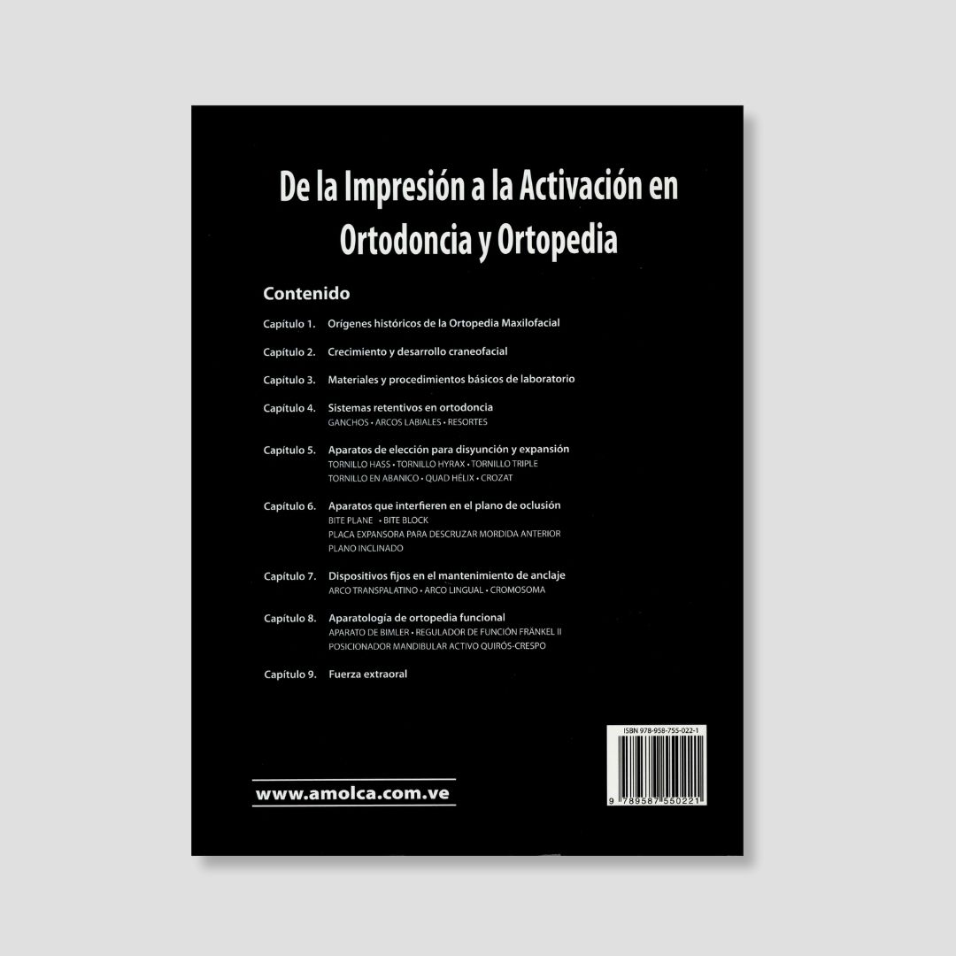 De la Impresión a la Activación en Ortodoncia y Ortopedia es una obra concebida para responder a las exigencias actuales de actualización continua en el ejercicio profesional de la ortodoncia y la ortopedia maxilofacial. En un contexto donde el desarrollo de nuevas técnicas, materiales y aparatologías avanza de forma acelerada, este libro ofrece un contenido claro, preciso y sólidamente respaldado por la literatura científica más reciente, facilitando al lector la comprensión y aplicación clínica del conocimiento.