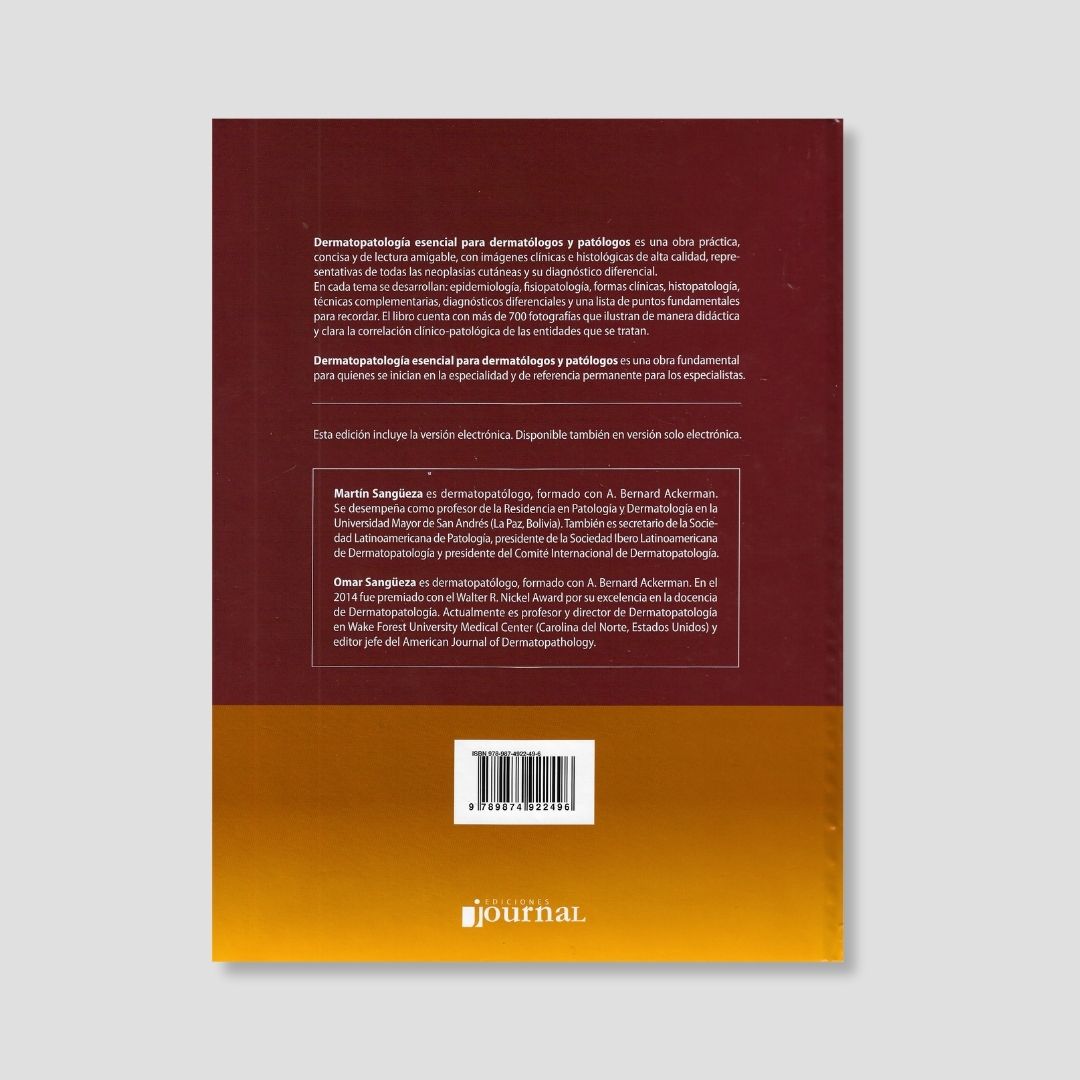 Dermatopatología esencial para dermatólogos y patólogos es una obra integral y didáctica diseñada para facilitar la comprensión y el diagnóstico preciso de las principales enfermedades cutáneas, con especial énfasis en las neoplasias de la piel y sus diagnósticos diferenciales. El libro combina de manera clara la información clínica con los hallazgos histopatológicos, permitiendo una correlación clínico-patológica fundamental para la práctica diaria tanto del dermatólogo como del patólogo.