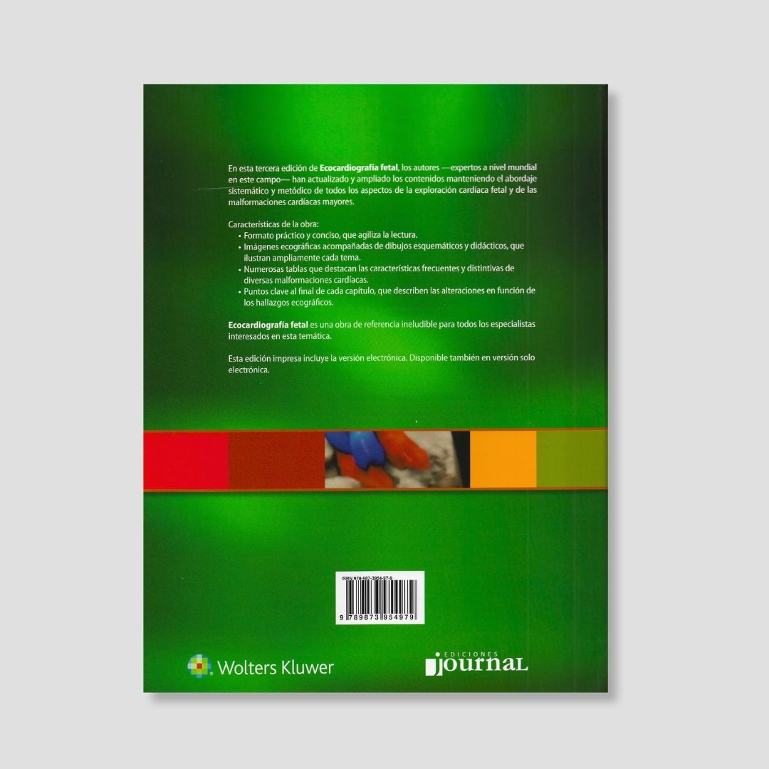 “Ecocardiografía Fetal” (3ª edición) es una obra espléndidamente ilustrada y de lectura amigable que abarca todos los aspectos de la exploración cardíaca fetal y las malformaciones cardíacas mayores. Actualizada y ampliada por expertos mundiales, mantiene un abordaje sistemático y metódico, con formato práctico y conciso: imágenes ecográficas acompañadas de dibujos esquemáticos didácticos, tablas destacando características frecuentes/distintivas de malformaciones y puntos clave al final de cada capítulo basados en hallazgos ecográficos. Referencia ineludible para especialistas en medicina fetal, cardiología pediátrica, obstetricia y ecografía prenatal. Incluye versión electrónica gratuita.