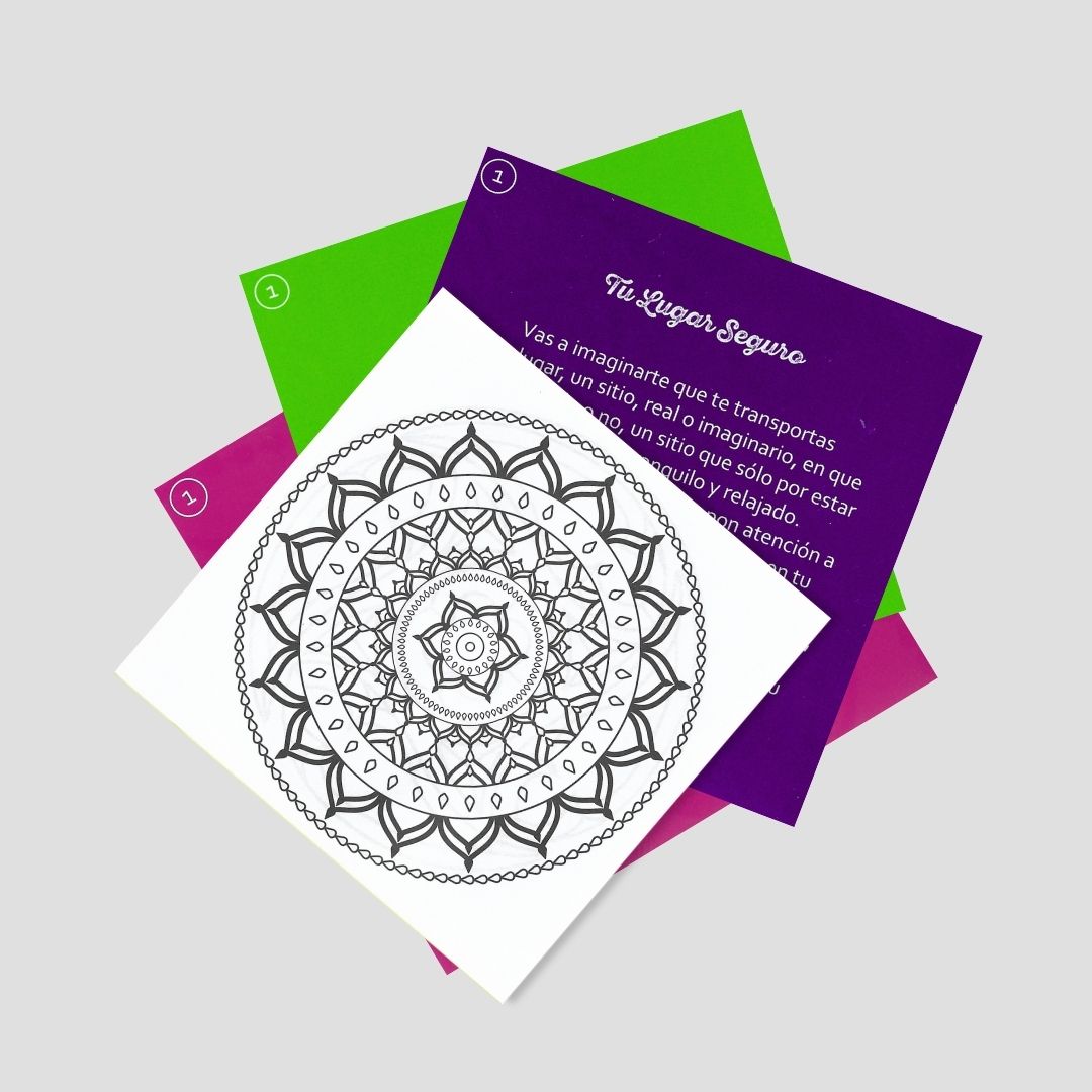66 cartas + 1 instructivo + 1 taco con 100 mándalas para pinta