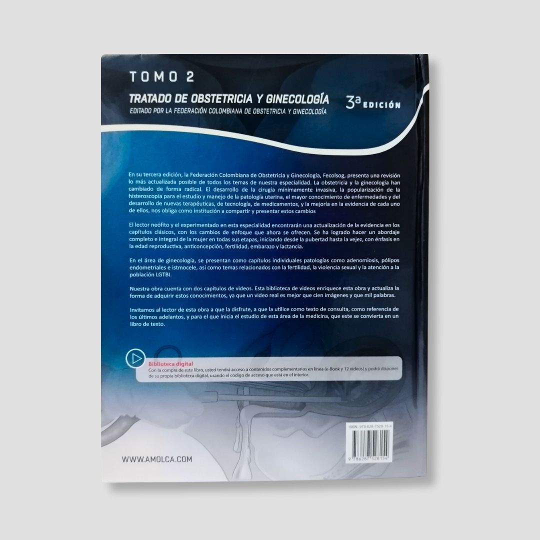 En su tercera edición, la Federación Colombiana de Obstetricia y Ginecología, Fecolsog, presenta en el Tratado de Obstetricia y Ginecología una revisión lo más actualizada posible de todos los temas de la ginecoobstetricia. Dicha Federación, fundada en Colombia en 1943 y que ha tenido como fin agrupar a los profesionales de la obstetricia y la ginecología de este país, entiende que estas áreas de la medicina han cambiado radicalmente con el desarrollo de nuevas tecnologías y medicamentos, y por esta razón se ha visto en la obligación, como institución, de compartir y presentar estos cambios en 2 tomos, 12 videos y 160 capítulos, divididos en diez secciones. En esta obra se logró hacer un abordaje completo e integral de la mujer en todas sus etapas, iniciando desde la pubertad hasta la vejez, con énfasis en la edad reproductiva, la anticoncepción, la fertilidad, el embarazo y la lactancia. Las diez secciones del libro abordan temas como el embarazo y el parto, las complicaciones durante la gestación y las patologías obstétricas, la medicina fetal, los trastornos ginecológicos, la oncología ginecológica, la endocrinología, la medicina reproductiva y la contracepción. La obra también destaca temas como la violencia sexual y la atención a la población LGBTI, que sin duda son un aporte para la medicina obstétrica y ginecológica. Los datos que se presentan a lo largo de todo el libro se fundamentan en registros de salud de Colombia, pero estos resultarán de interés para todos los ginecoobstetras de otros países que deseen conocer datos relevantes de la salud femenina para compararlos con los de sus países y federaciones. Los profesionales de la ginecoobstetricia verán en esta obra un compendio útil para conocer la salud de la mujer y además entenderán cómo abordar diversos trastornos que se presentan en sus propias pacientes.