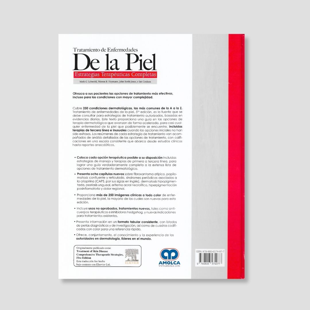Tratamiento de enfermedades de la piel – 5.ª edición: referencia clínica basada en evidencia que cubre más de 250 condiciones dermatológicas, organizadas de la A a la Z. Ofrece estrategias terapéuticas actualizadas, desde opciones iniciales hasta tratamientos de tercera línea e inusuales, con análisis y niveles de evidencia para apoyar decisiones clínicas efectivas.
